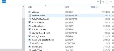 3.解压ADB工具安装包,之后打开文件夹,然后在上方路径输入‘cmd’,调出控制台