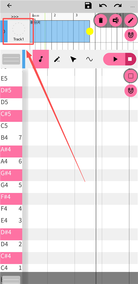 4、点击可创建音符。