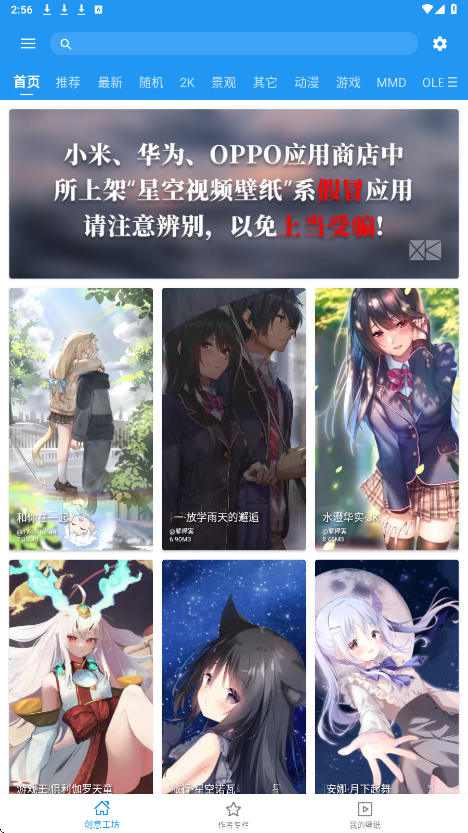 2、点击作者专栏,你可以根据画师作者找到自己想要的壁纸主题;