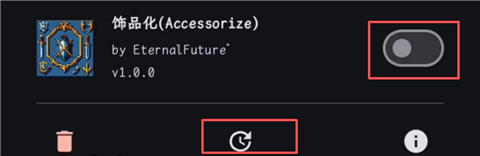 9、点击中间按钮可以更新Mod包,右边按钮可为Mod包的开关。