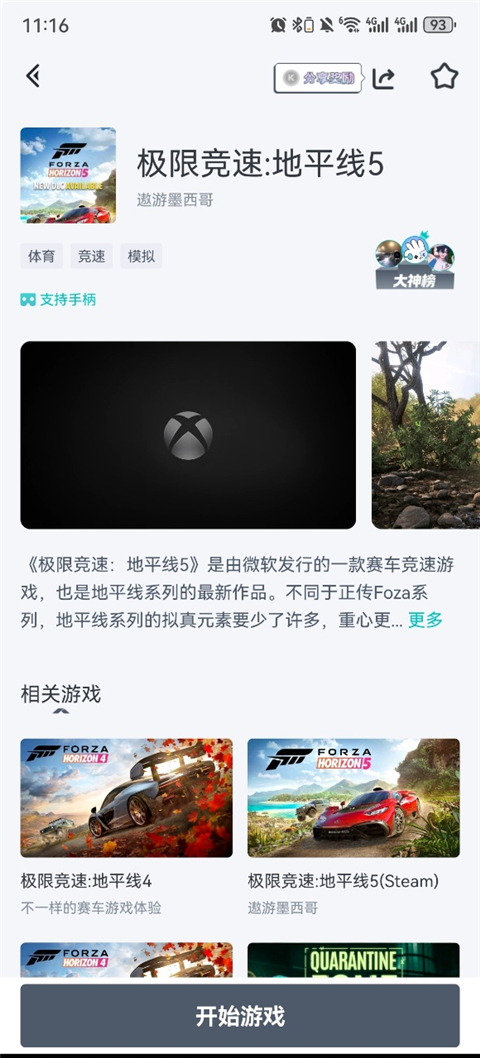 2、以极限竞速地平线5为例子,点击开始游戏;