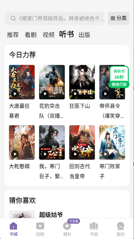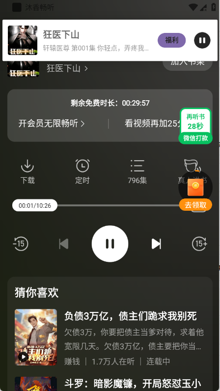 沐香畅听是一款多功能的娱乐应用,融合了短剧观看、小说阅读和听书功能,提供丰富的视听体验。无论是喜欢都市、青春还是古言等类型的短剧,用户都可以在这里轻松找到自己喜爱的内容。应用不仅支持精彩短剧的在线播放,还提供海量小说资源,满足不同用户的阅读需求。更有听书功能,让你在繁忙的日常生活中也能享受故事的魅力,随时随地开启娱乐时光。