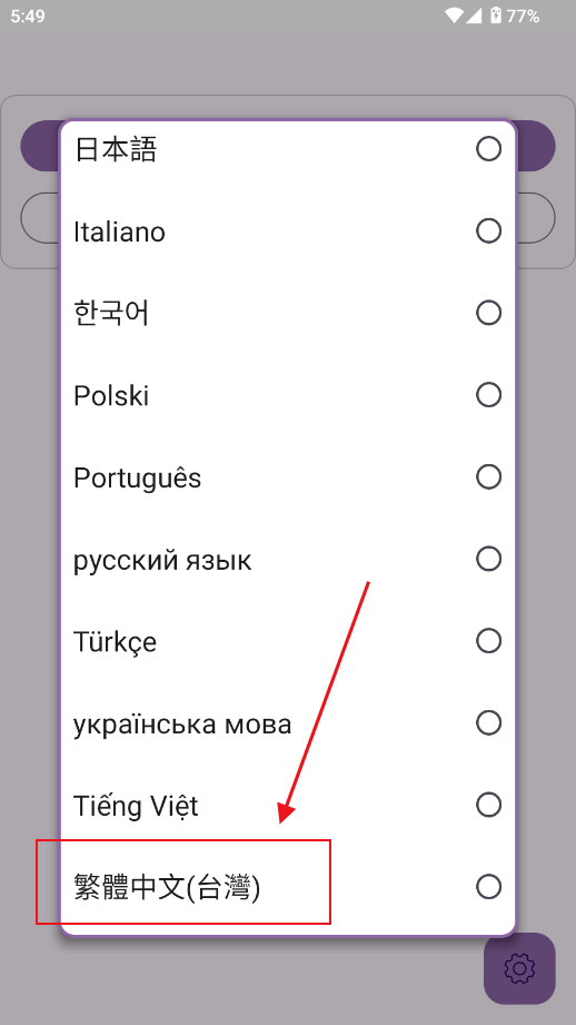 4、往下滑,找到中文,目前只有繁体中文