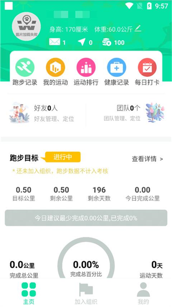 4. 每次完成运动后系统会生成对应记录,回到主页面可查看总公里数、完成率与剩余天数等数据统计。