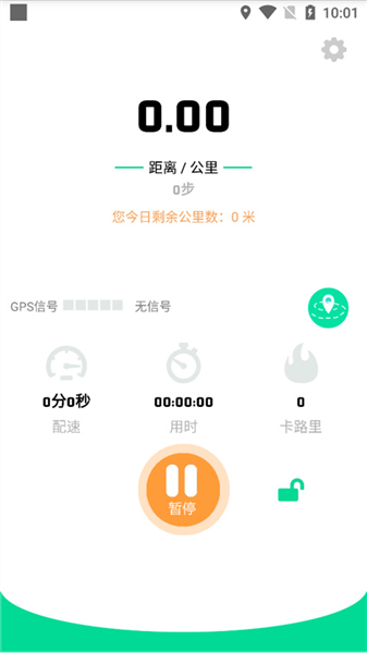 3.进入定位界面,等待GPS信号定位成功后,点击开始按钮开始记录跑步数据。