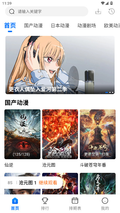3.然后打开;进入到首页中,如图所示。首页中有大量的动漫作品推荐,