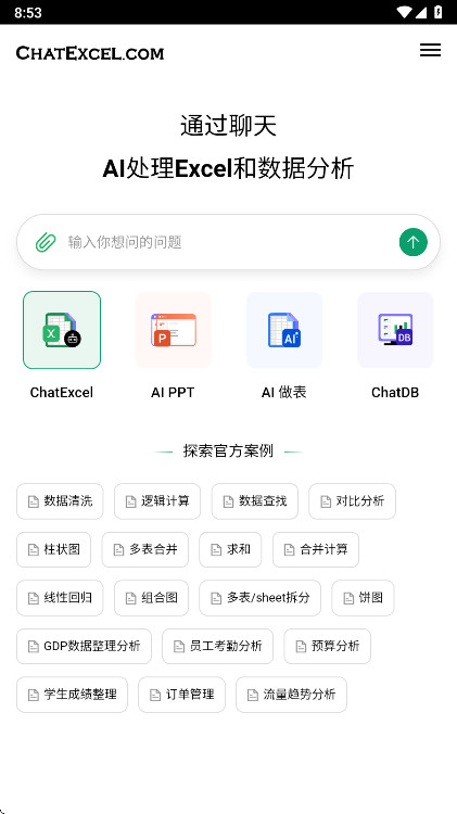 1、打开登录酷表ChatExcel app后点击输入框