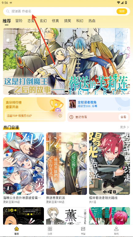 2.使用顶部的搜索框,输入漫画名称、作者或关键词,快速找到您想阅读的漫画。