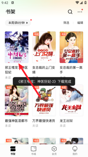 1、在书城中选择一个需要加入书架的小说。