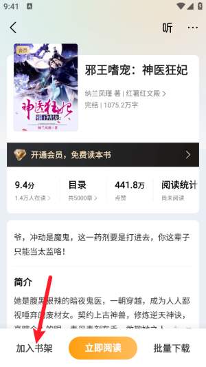 2、进入书架详情页后点击左下角"加入书架"。