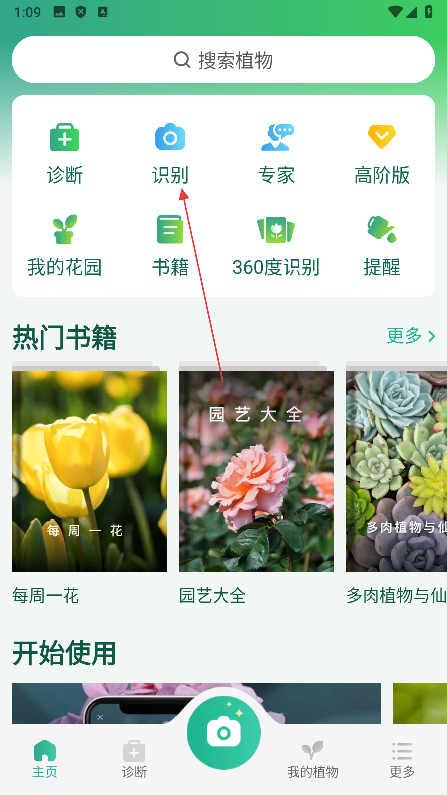 1. 点击「识别」,进入植物拍摄界面。