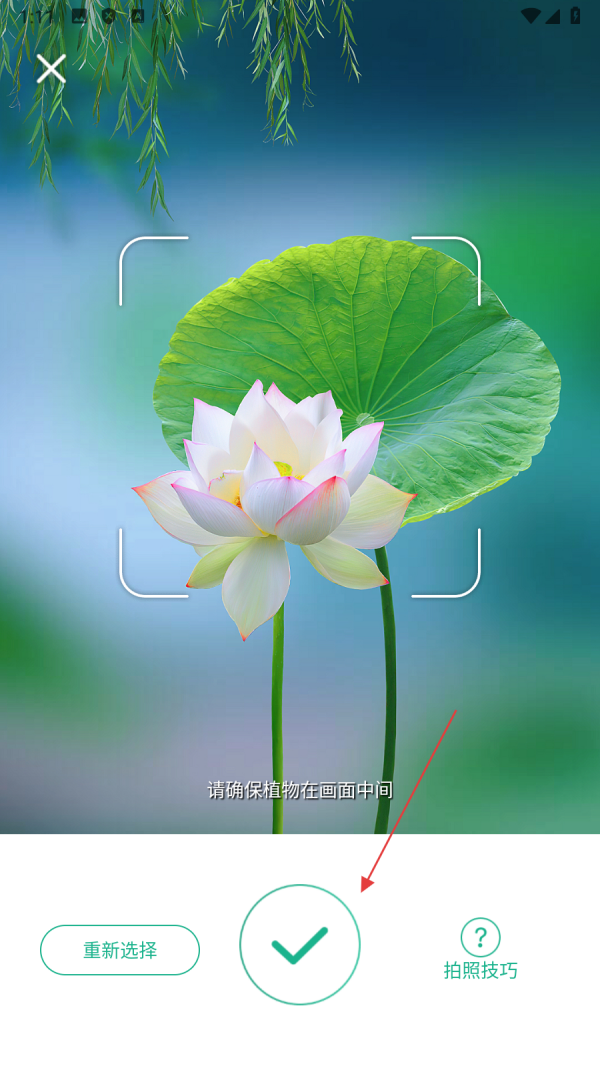 3.于植物照片选择页面,选中【目标植物照片】后,点击【对勾】,即可进入植物识别结果页面。