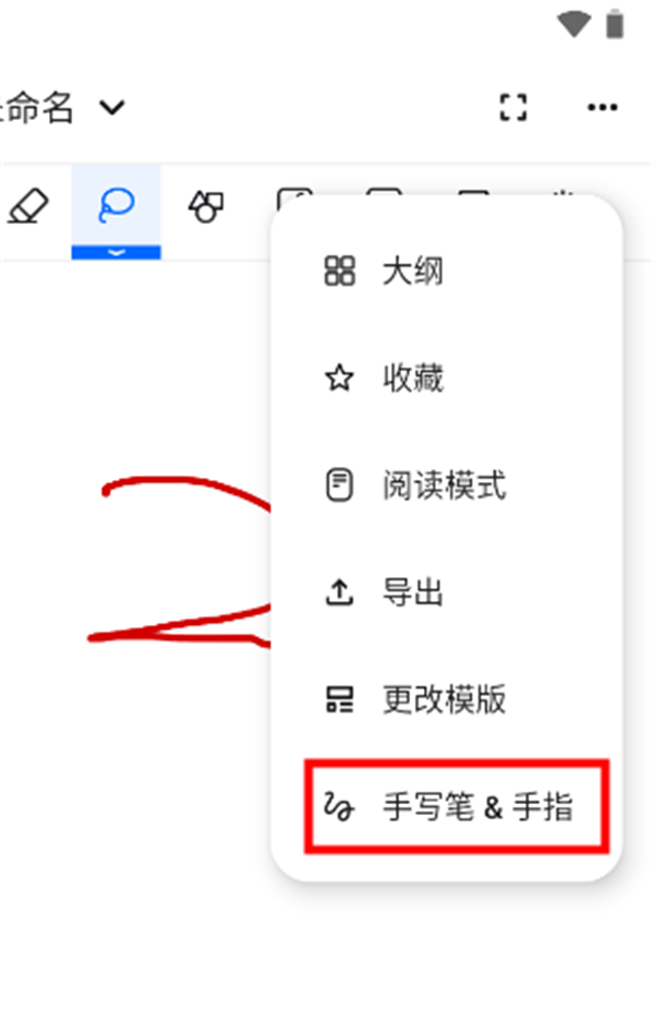 2、点击弹出菜单中的手写笔和手指按钮。