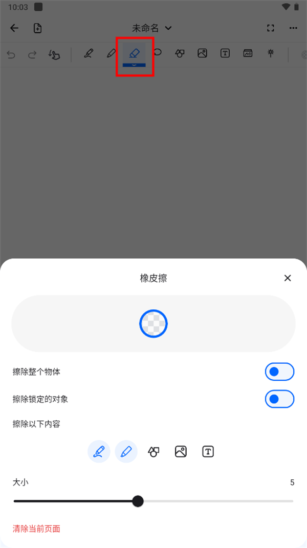 您还可以调整可擦除对象的类型,默认情况下只有钢笔和荧光笔块可擦除。