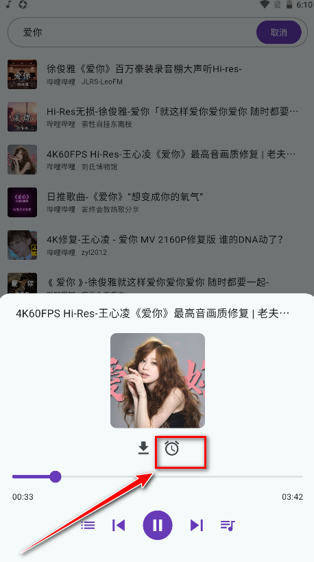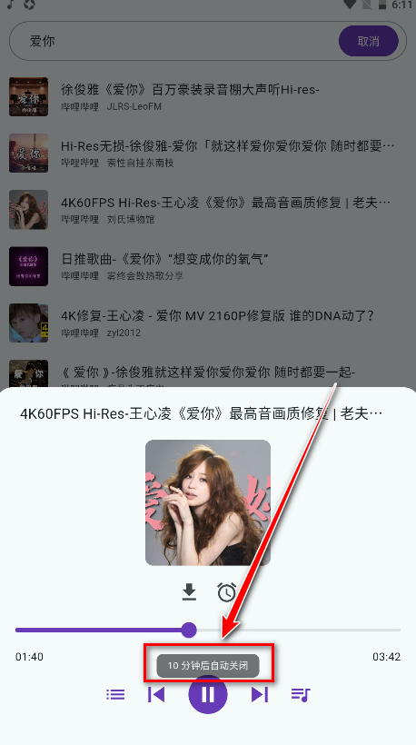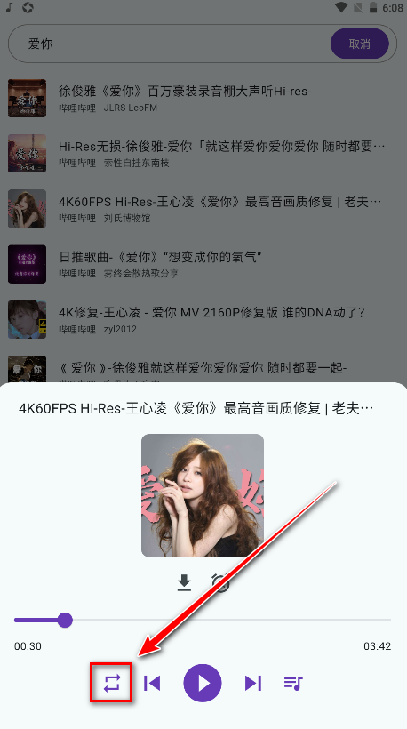 6.点击模式符号,可以切换单曲循环、列表循环、随机模式、循序播放等等。