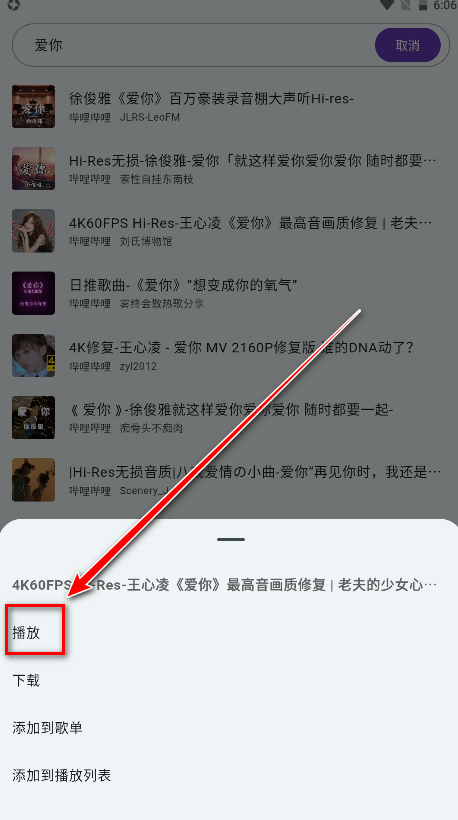 4.支持播放、下载、添加到歌单、添加到播放列表。在这里小编以点击播放为例子。
