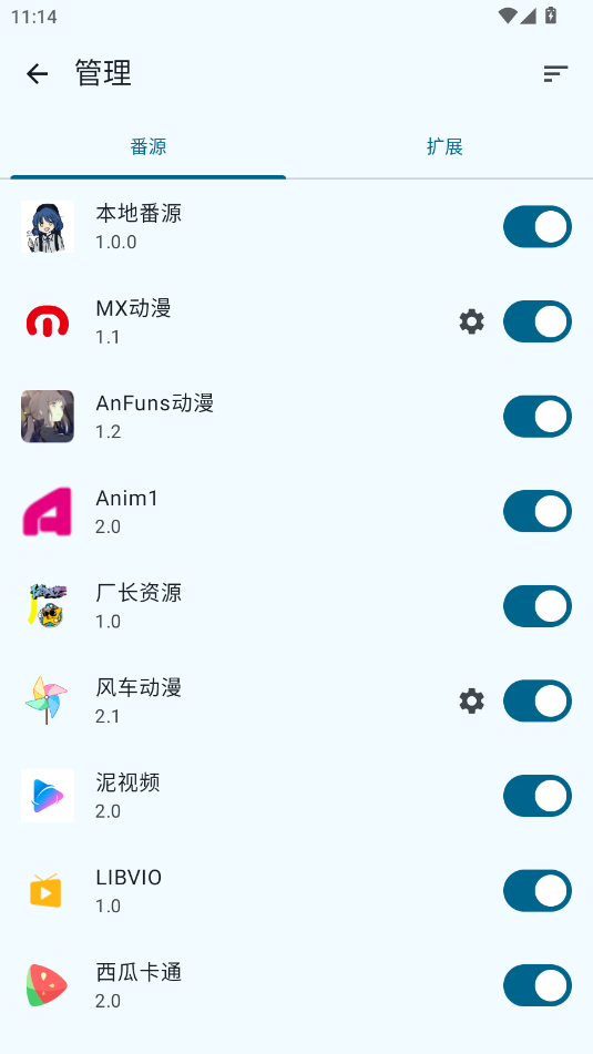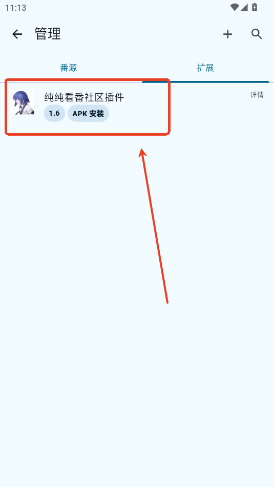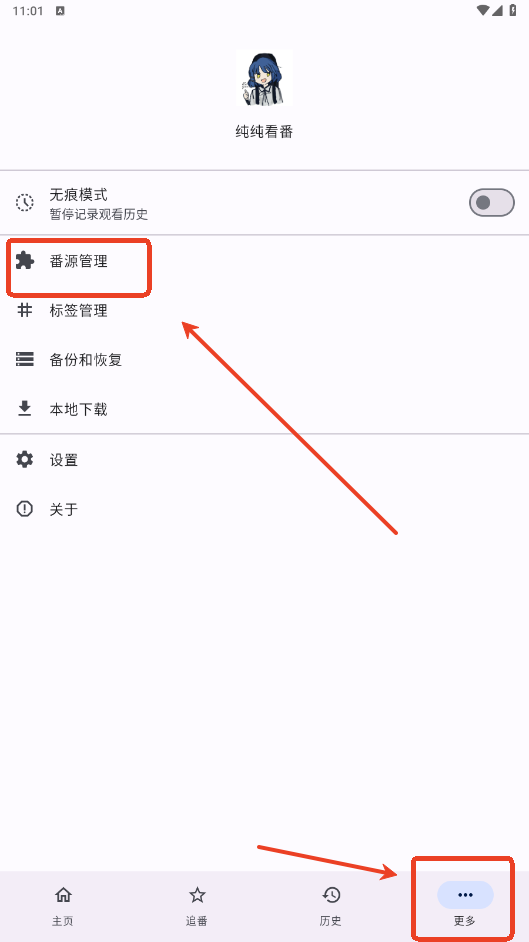 2.下载完成后进入软件点击更多的番源管理。