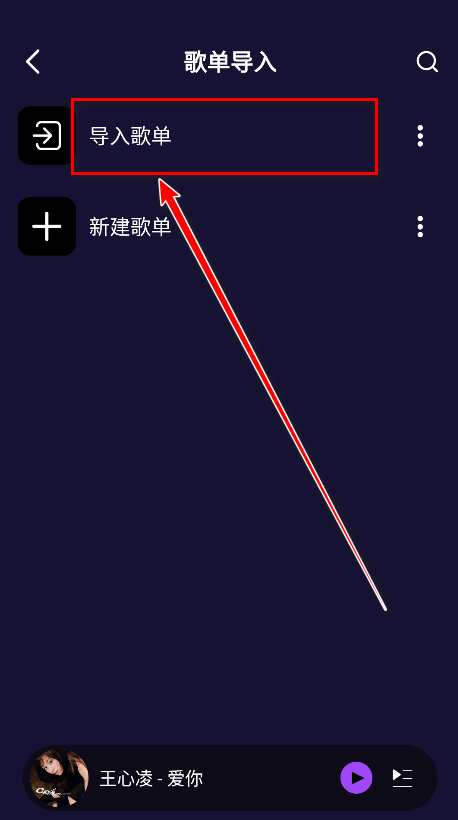 2.点击导入歌单。