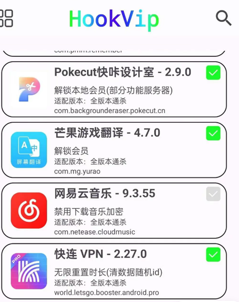 框架支持:HookVip支持以下框架:LSPosed/LSPatch/太极/应用转生。