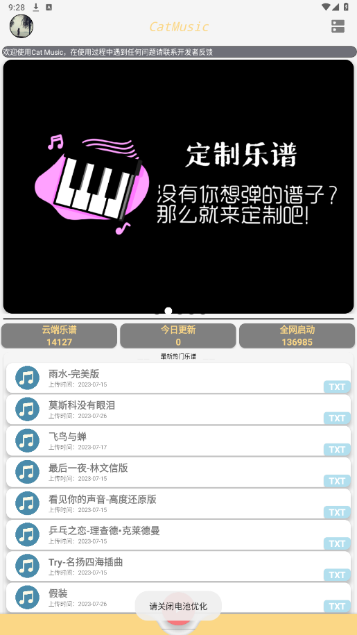 3、在正式进入软件后,浏览应用功能布局,可以直接在首页处选择曲谱使用