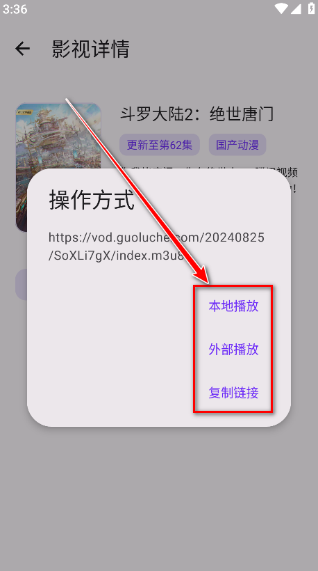 4.如下图所示,有三种操作方式,在这里小编以点击本地播放为例。