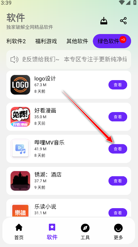 2、接着点击下方的【软件】,我们可以看到各种不同的应用资源