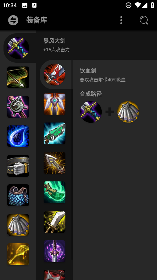 3、在装备库,可以任意浏览不同装备合成之后的威力。