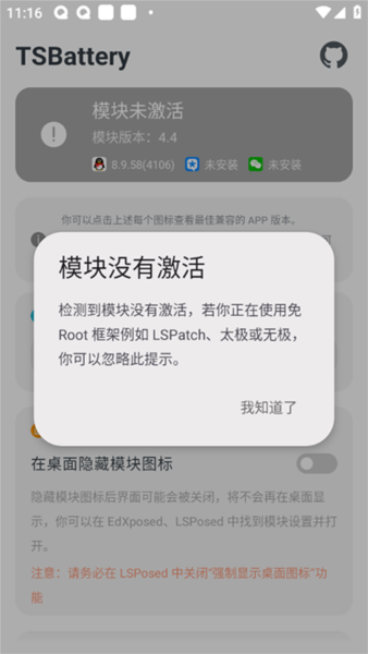 1、首先需要激活tsbattery模块,如果你正在使用免root框架,例如:lspatch、太极或无极,则无需激活;