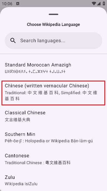 4、然后从【Wikipedia Language】中Choose Wikipedia Language。