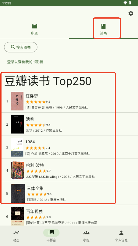 3、我们可以选择图书来查看豆瓣图书的一些评分;