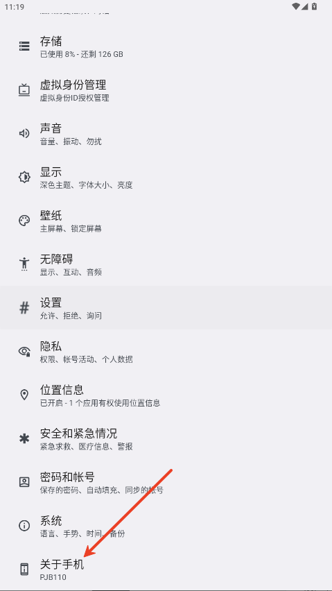 进入“设置” > “关于手机”。