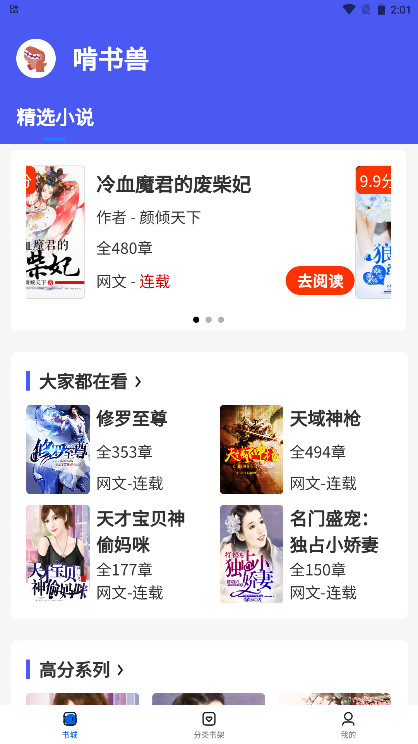 1、打开软件在书城可以看到各种小说。