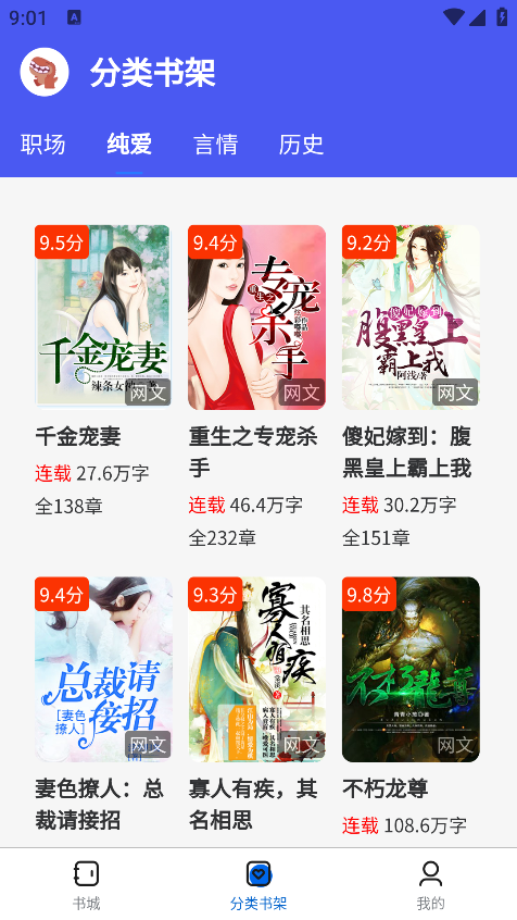 2、点击分类书架,能够获得全部类别。