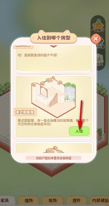 3、选择一个你喜欢的房子入住,需要解锁房子后才可以更换