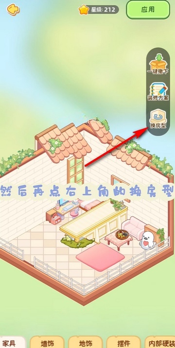 2、进入装扮页面,在上方可以看到【换房型】