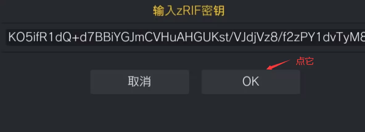 3、点击输入zRIF,找到你输入法剪切板中的那一串密钥,粘贴进去,然后点击OK即可安装。安装时间根据你的游戏大小决定,一般一个3G的游戏平均在3-5分钟。最后点击OK完成安装。