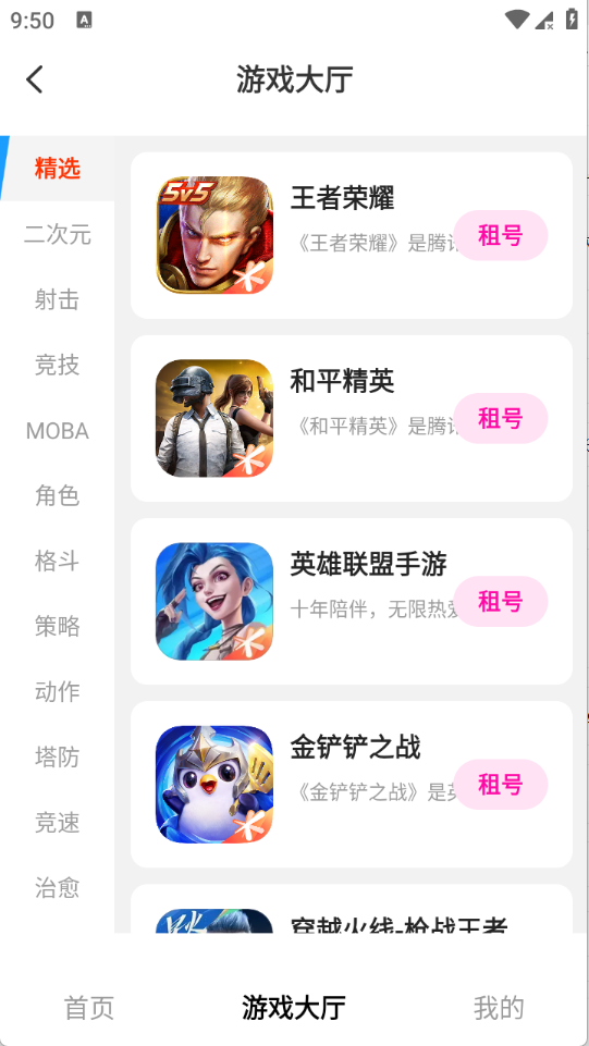 3、游戏大厅页面将游戏账号进行了详细的归类。