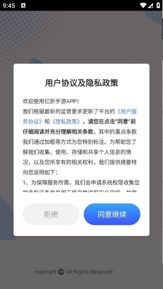 1、用户在本站下载亿折手游app,点击同意。