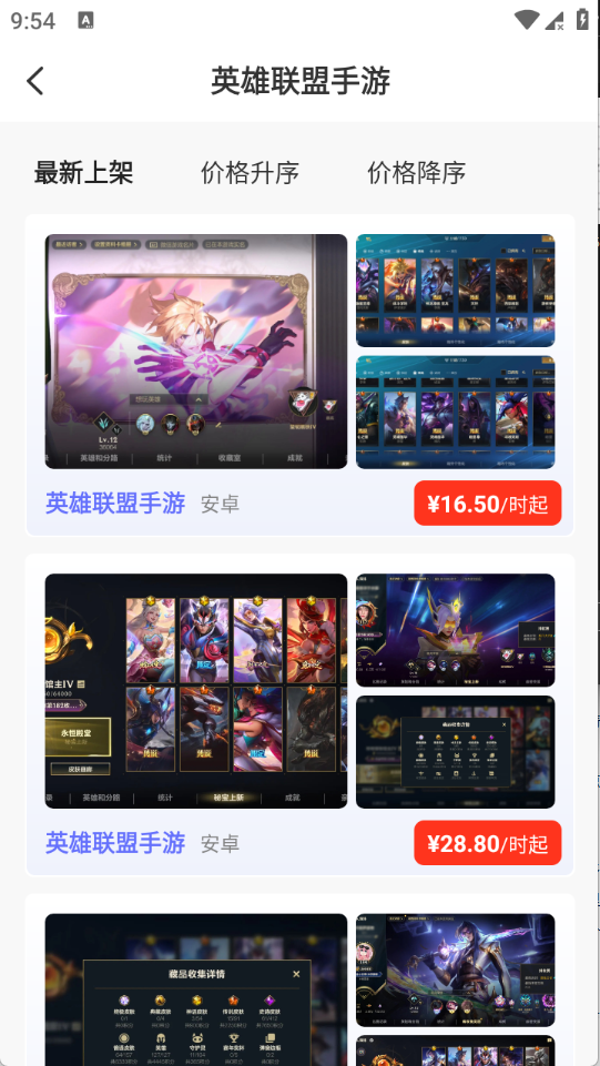 4、玩家点开需要的游戏账号进入到详情页,就会出现全部的账号类型。