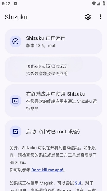 5、提前下载安装并打开Shizuku软件并开启权限按钮。