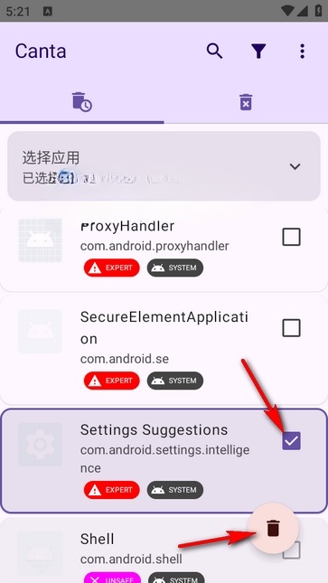 6、然后回到Canta软件,选择要卸载的应用,点击是的即可。