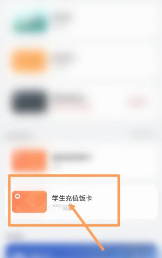 3.在添加卡片页面中,点击页面上的学生充值饭卡,如下图所示: