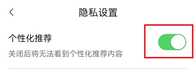 4、点击【个性化推荐】右边的滑块按钮。