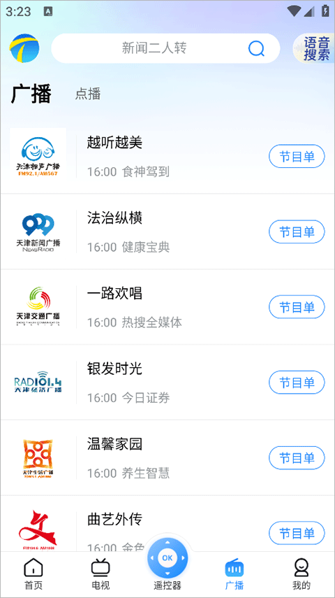 2. 收录天津广播电台 11 个频道,并有回放和预定功能,满足多样需求。
