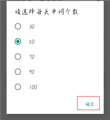 3、我们可以切换至30、50、70、90、100个,选择完成,点击【确定】即可。