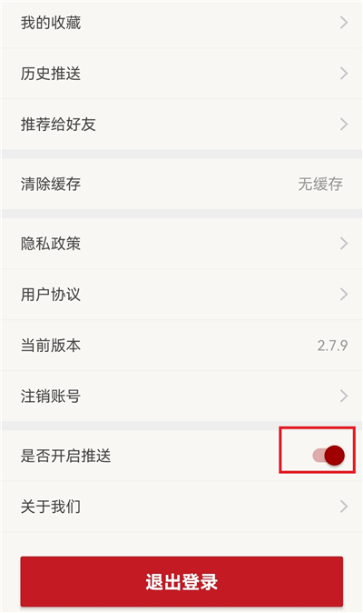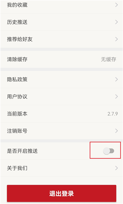 3、变成灰色就是成功关闭推送了,想要打开的话就再次点击即可。
