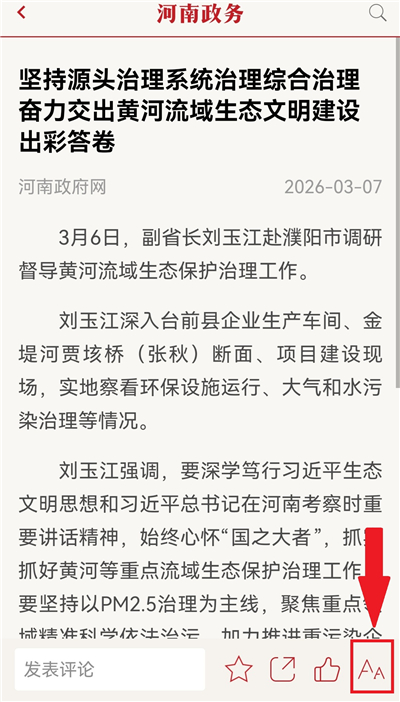 3、可以放大当前新闻的字体,不过只有这一个字号,再次点击可还原。