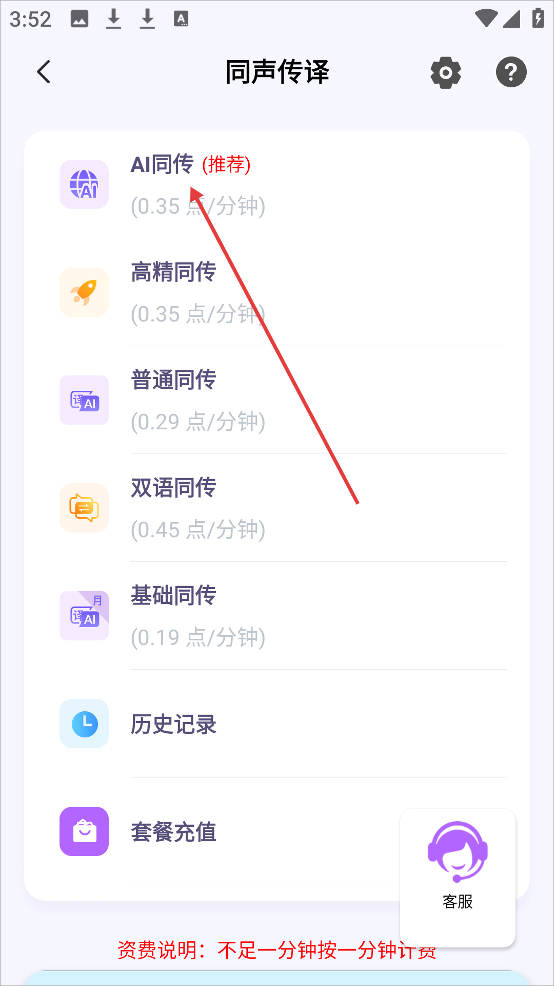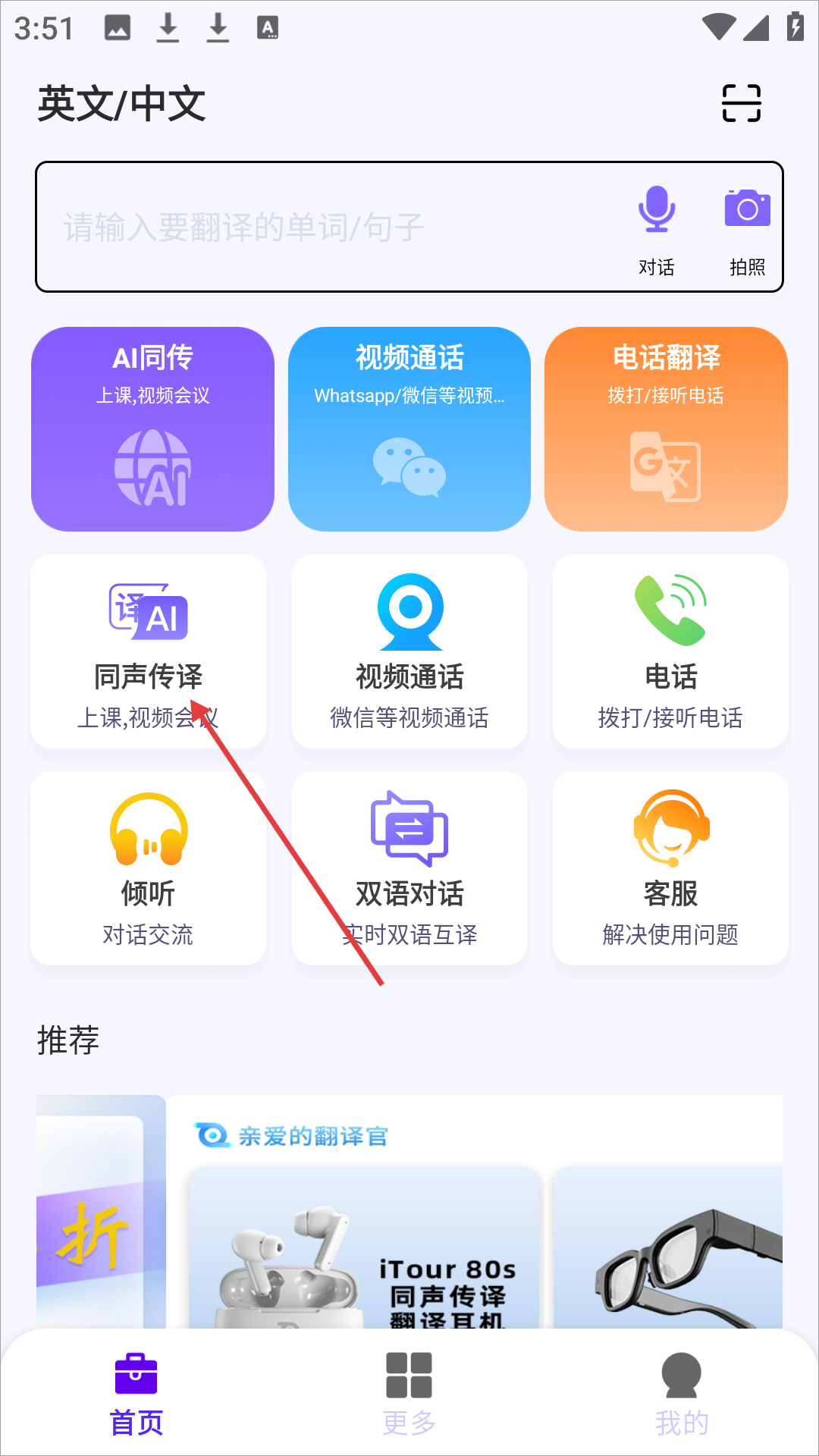 1、在本站下载并打开亲爱的翻译官app,点击同声传译。