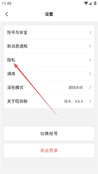 3、然后点击【隐私】