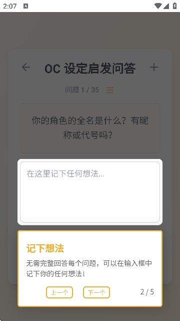 3、在输入框中记下任何想法,无需完整回答每个问题。